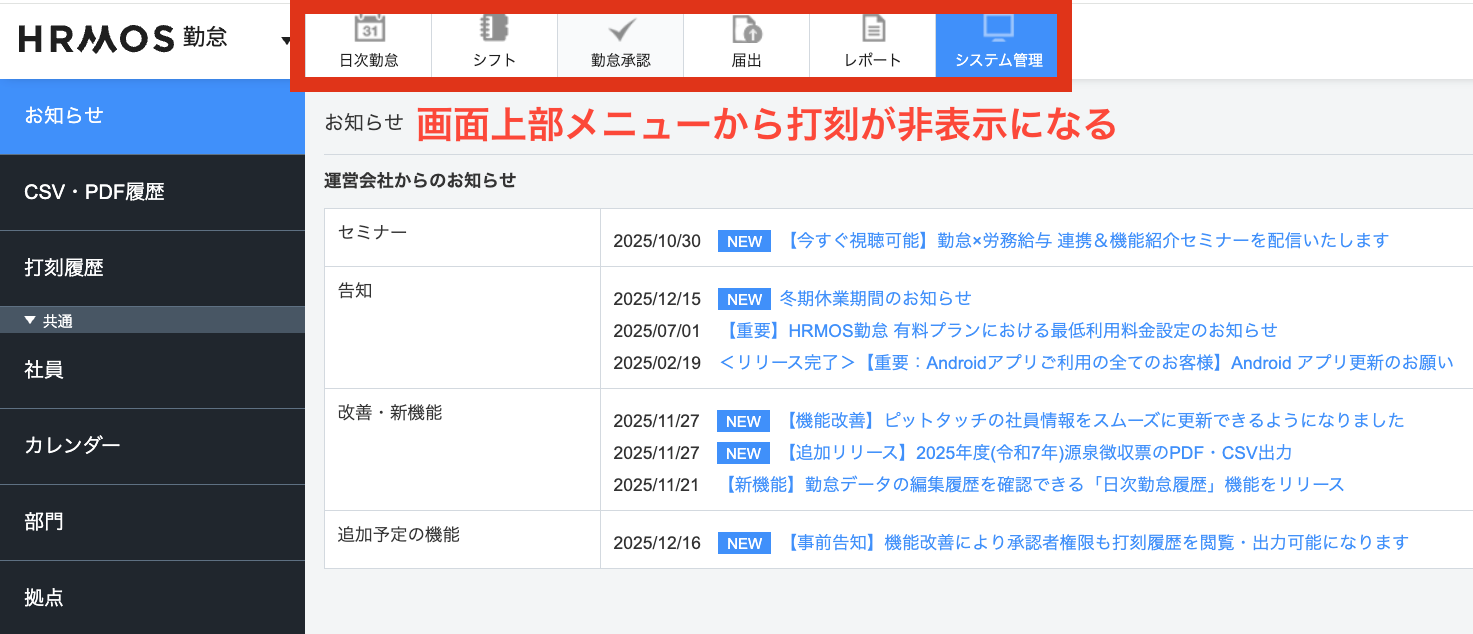 打刻・出退勤について