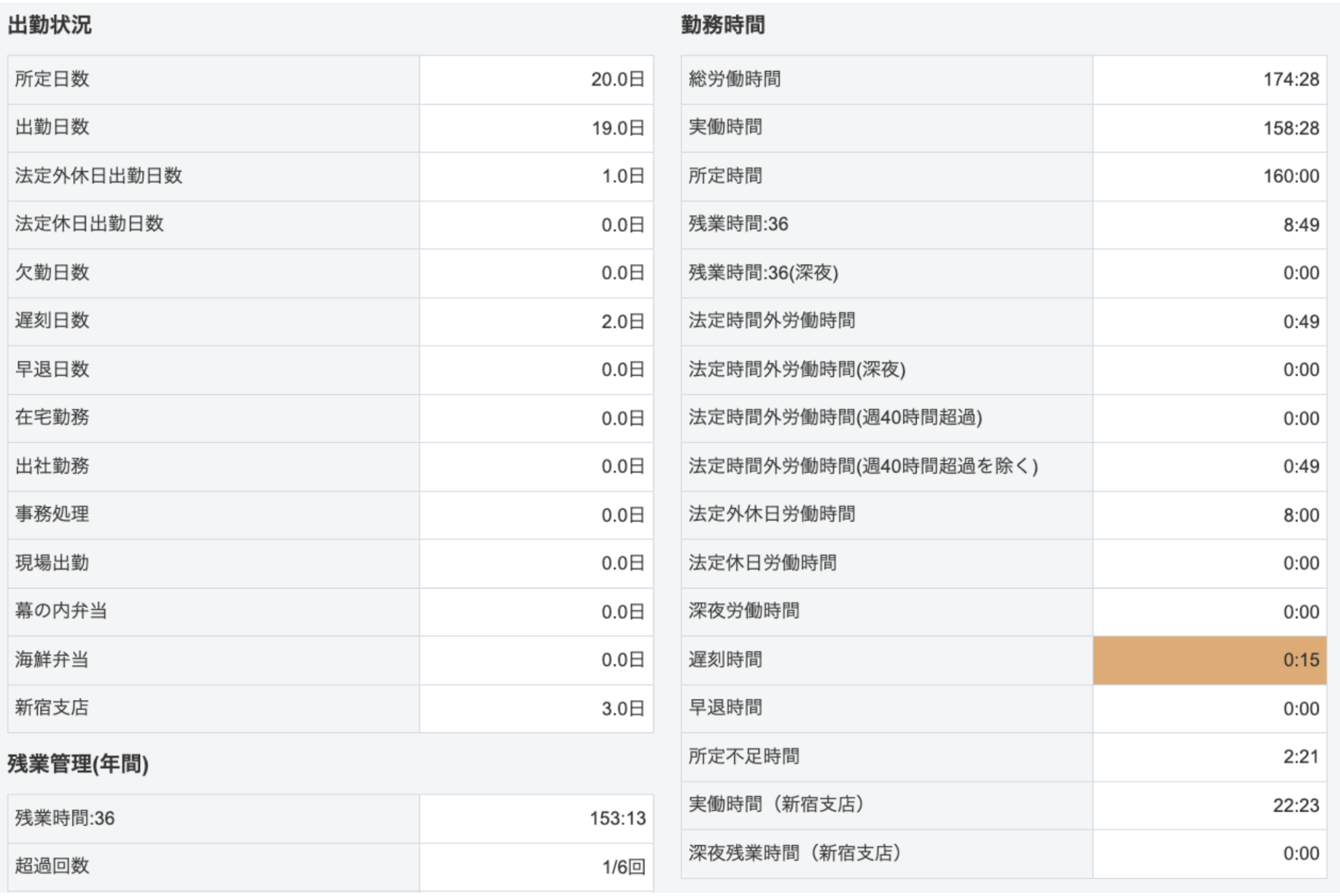 日次勤怠関連
